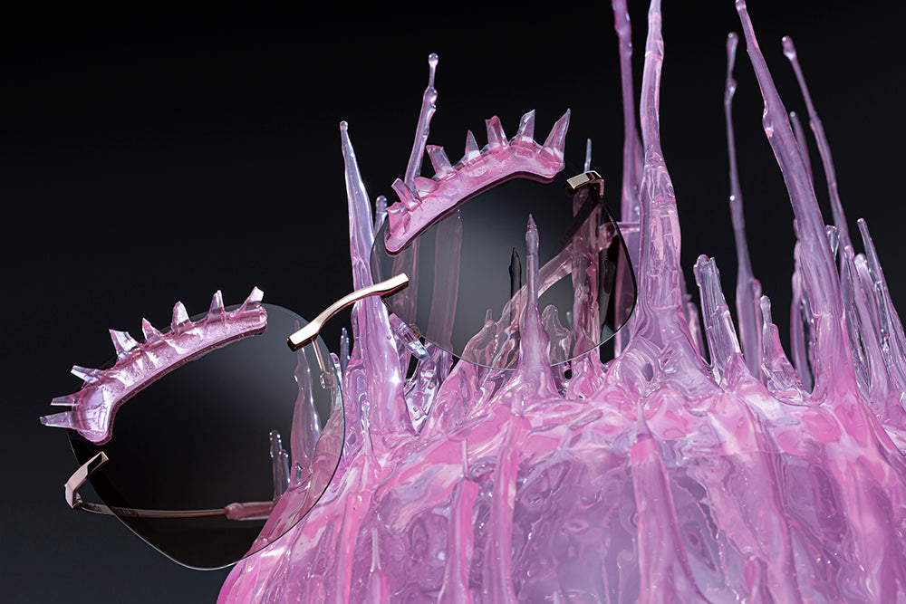 gives birth to a breath-taking collection of women’s sunglasses. Their maximalist aesthetic is defined by a unique detail originating not from a design but from a gesture, and for this inimitable and unrepeatable.